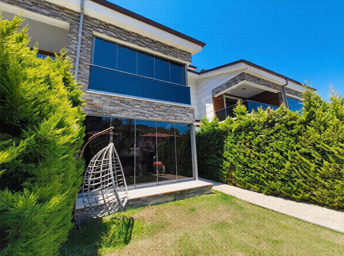 Geniş bahçesi, modern cephe tasarımı ve cam detaylarıyla gün ışığını maksimum içeri alan mimarisi sayesinde hem ferah hem de estetik bir yaşam alanı sunar.